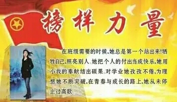 在班级需要帮助的时候,她总是第一个站出来!牺牲自己,照亮别人。她把个人的付出当成快乐,她用小我奉献出硕果。对学业她孜孜不倦,为理想她不断突破,在青春与成长的路上,她从未停止过高歌。