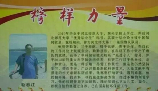 他精于钻研,善于合作,在科研工作中做出了出色的成绩,获得了中科院安徽光机所“先进个人”称号,于2012年到澳大利亚做访问学者。他坚持学习,锲而不舍,广泛涉猎最新的科研技术,凡是文献中有报道的相关最新科研成果,他都要仔细研读,遇到难题,他就翻书籍、找资料,寻找最佳解决方案。如今,自信积极的他已成功自荐到中国环境科学研究院工作。