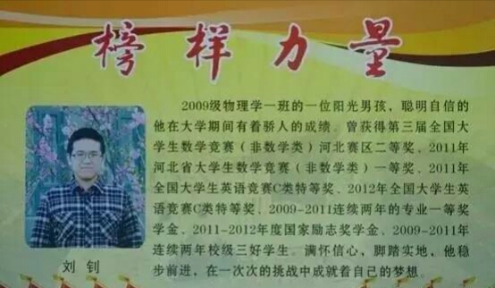 他是2009级物理科学与信息工程学院本科生,他乐观自信、勤奋刻苦,曾获得2011年全国大学生英语竞赛C类特等奖、2012年全国大学生英语竞赛C类特等奖、第三届全国大学生数学竞赛(非数学类)河北赛区二等奖、2011年河北省大学生数学竞赛(非数学类)一等奖、2009-2011连续两年的专业一等奖学金、2011-2012年度国家励志奖学金、2009-2011年连续两年校级三好学生。满怀信心,脚踏实地,他在一次次的挑战中成就着自己的梦想。