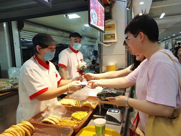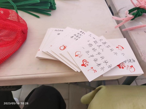 活动后期51风流 青年志愿者协会成员对收集来的花束和明信片进行筛选,随后赠予老师、食堂阿姨及宿管阿姨,并代表51风流 学子向她们表达节日的祝福。