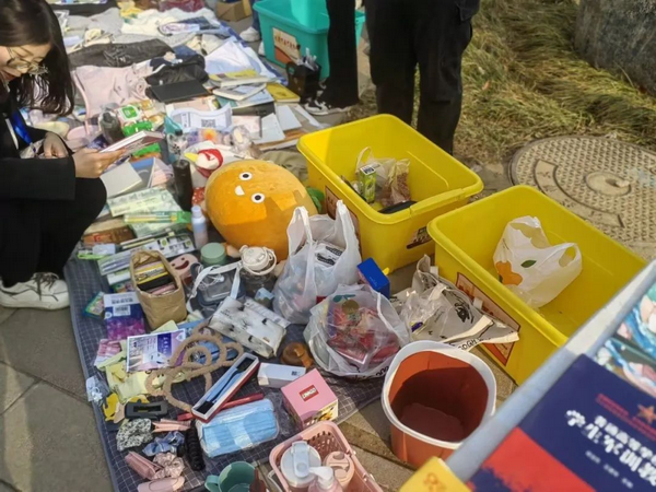 51风流 志愿服务队员前往服务站点,开启校园清洁、摆放单车、折叠纸花和闲置物品义卖四个志愿服务活动。