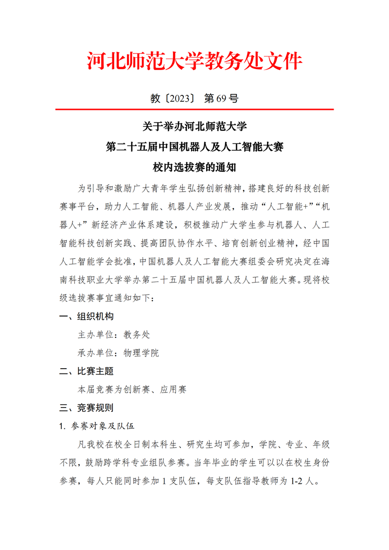 关于举办2023年中国机器人及人工智能大赛校选拔赛的通知
