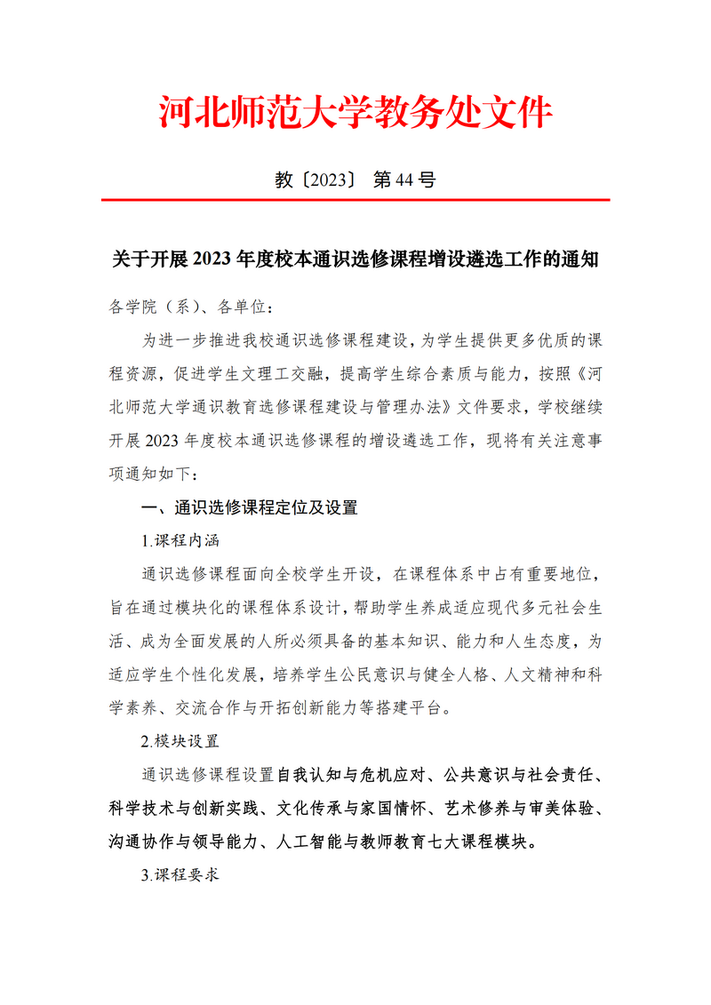 关于开展 2023 年度校本通识选修课程增设遴选工作的通知