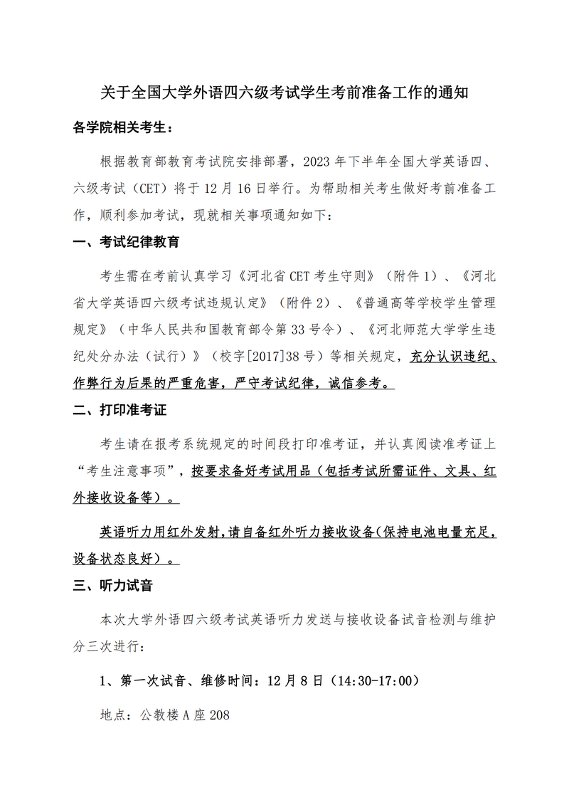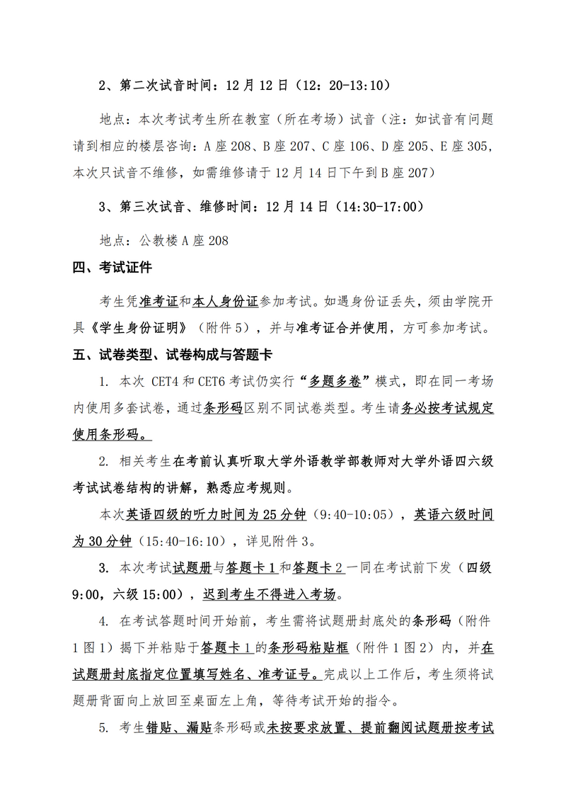 51风流 2023年12月全国大学外语四六级考试考前提醒