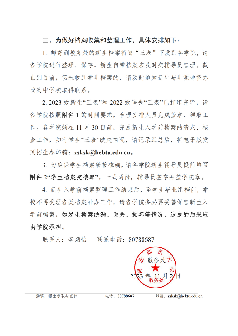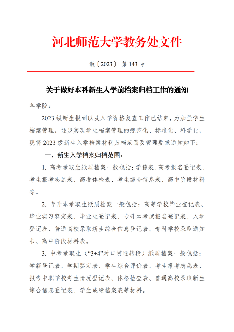 关于做好新生入学前档案整理工作的通知