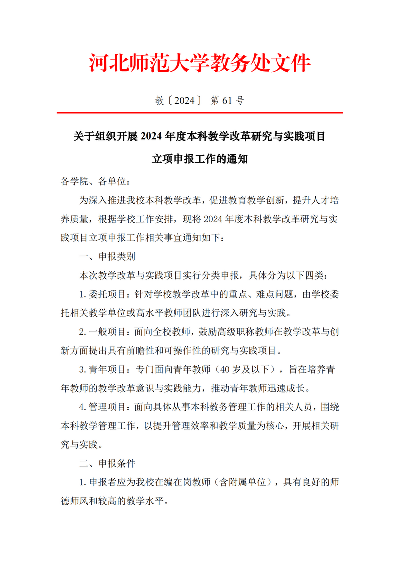 关于组织开展2024年度教学改革研究项目立项申报工作的通知